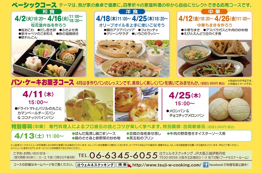 【JR大阪三越伊勢丹校】4月のメニュー全日程。体験レッスン開催中(初回2,000円)。〈クリックで詳細〉