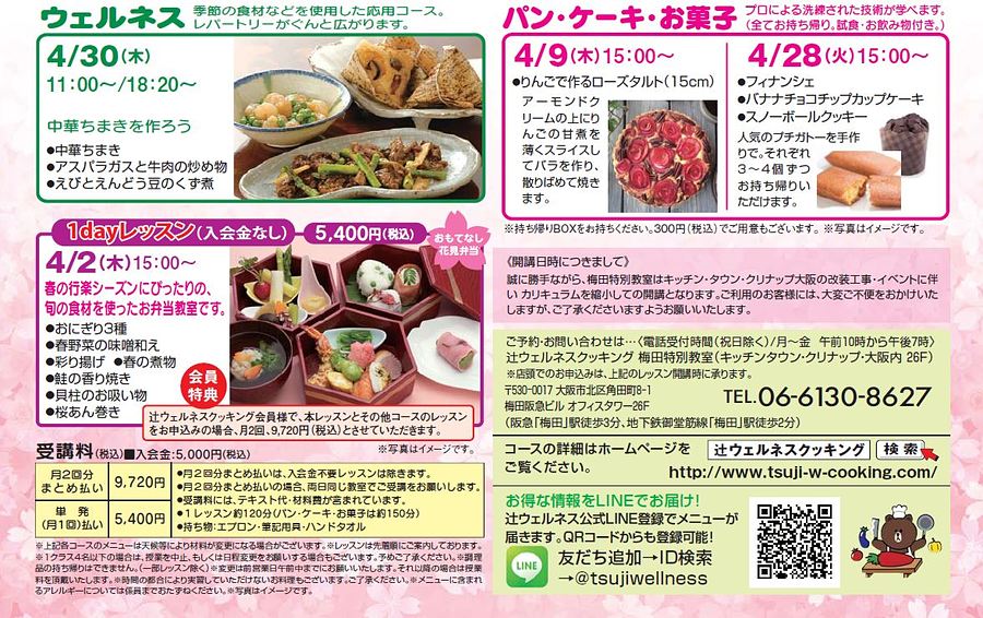 【梅田特別教室】4月のレッスンを更新しました。(梅田阪急ビルオフィスタワー26F キッチンタウン・クリナップ・大阪内)<クリックで詳細>