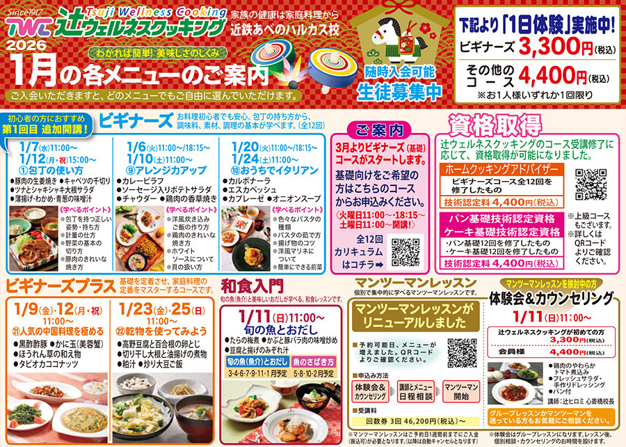 - 【近鉄あべのハルカス校】2026.1月のレッスンを更新しました。<クリックで詳細>