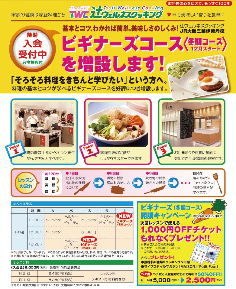 【JR大阪三越伊勢丹校】ビギナーズ〈冬期コース〉新規入会でレッスン料1,000円OFFチケットプレゼント!〈クリックで詳細〉
